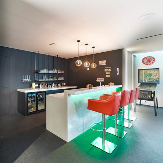 Im Untergeschoss dieses exklusiven Wohnhauses sollte ein Steinteppich im Hobbyraum entstehen. Diese „Man Cave“ mit Bar- und Billardbereich wurde als hochwertiger Aufenthaltsraum ko...