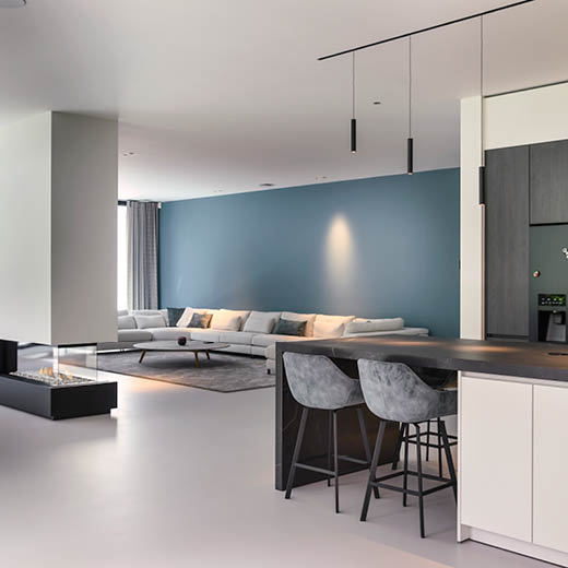 Im diesem exklusiven Wohnhaus sollte ein hochwertiger, fugenloser Bodenaufbau entstehen, der sich konsequent durch alle Räume vom Erd- bis ins Obergeschoss zieht.