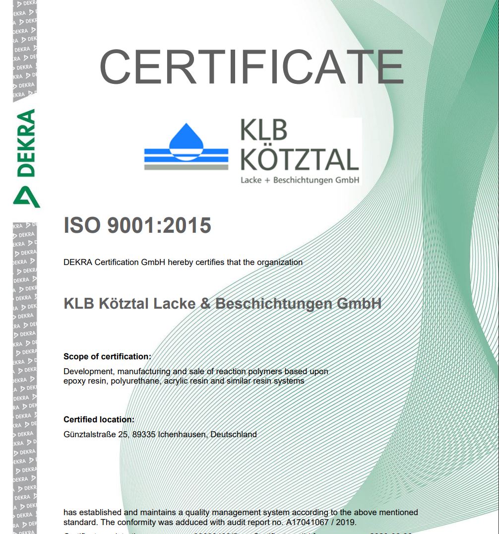 We are certified according to the most important national and international standard in quality management – ISO 9001:2015. This common standard sets the rules for KLB to continuou...