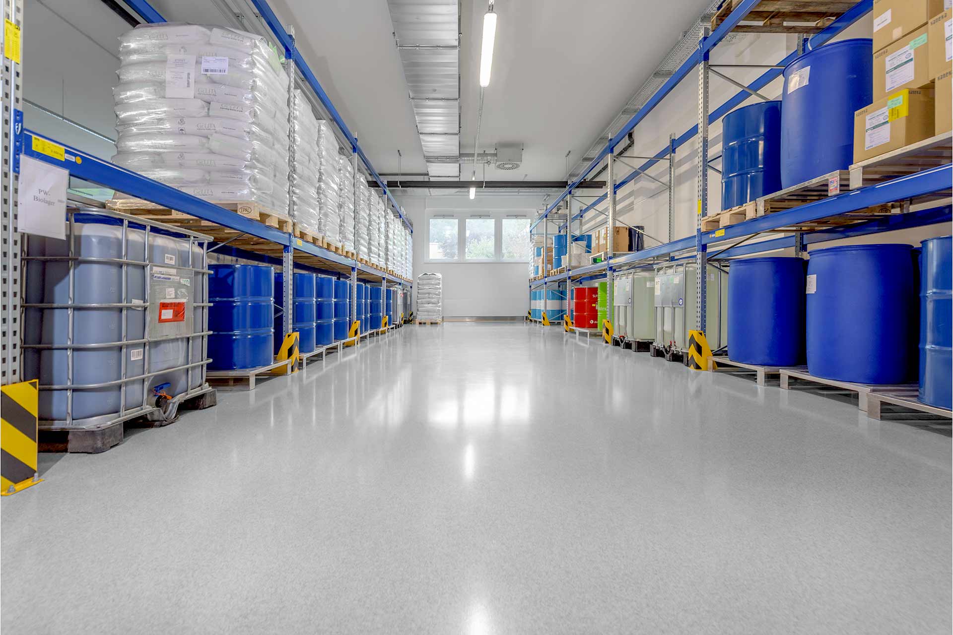 Therefore, a floor covering was required that would support both the storage and production processes at the natural remedy manufacturer. The industrial floor had to withstand the high mechanical loads caused by forklift trucks or other means of transport used in daily operations.
