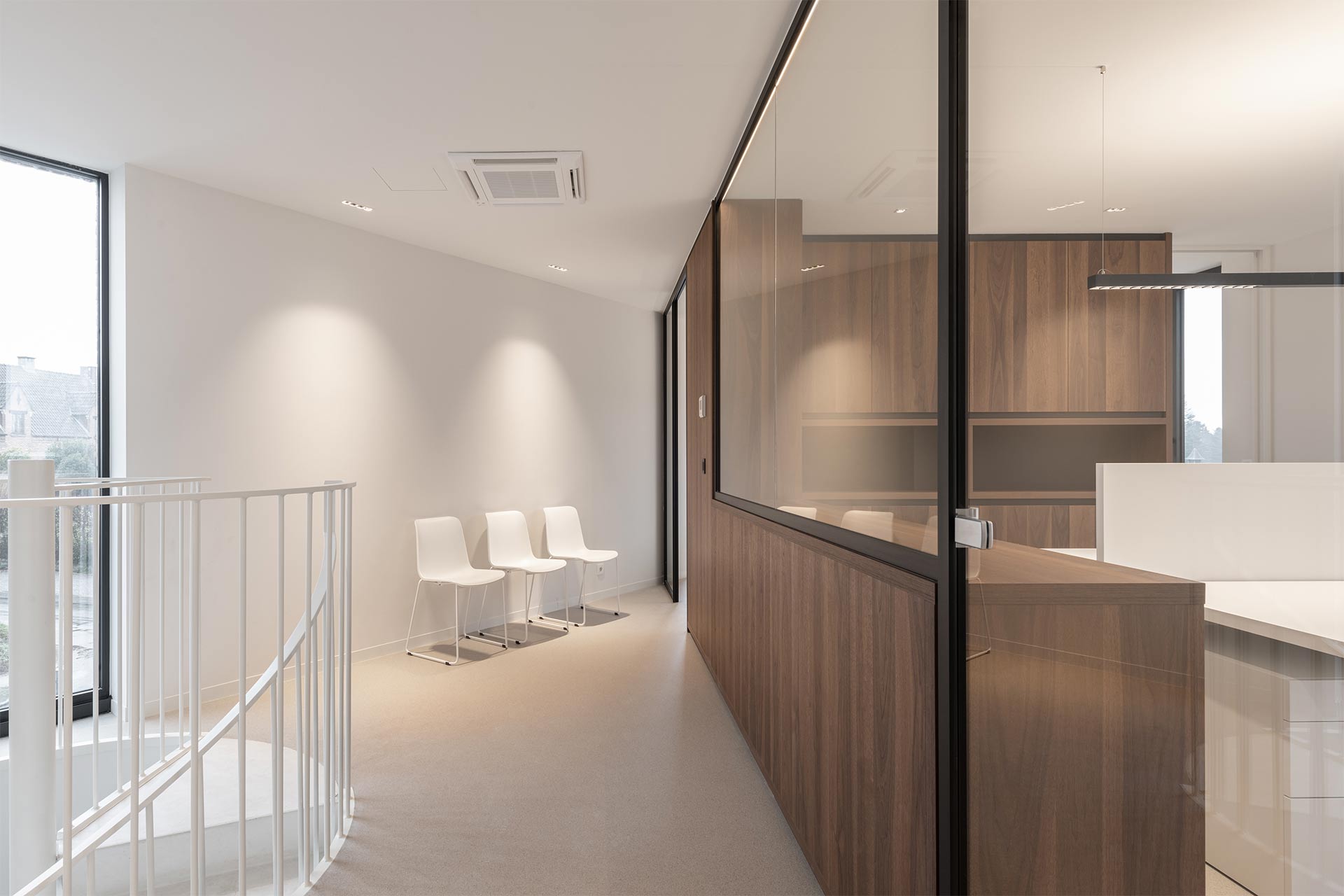 Un grand nombre de visiteurs et l’utilisation quotidienne en tant que bureau exigeaient un revêtement robuste, stable et facile à nettoyer, avec une surface peu sensible aux taches.