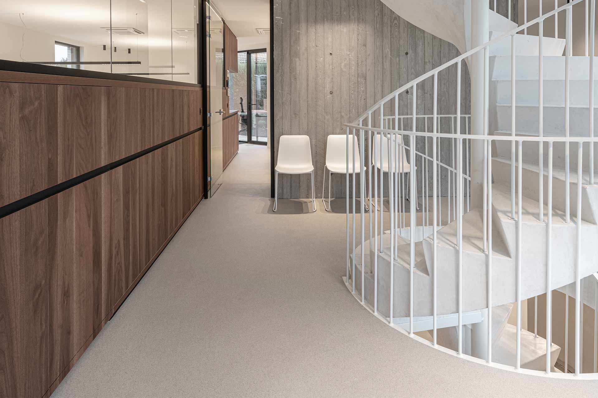 Plusieurs murs du bureau ont également été revêtus de KLB-SYSTEM POLYURETHAN PU 806 E – Wall, ce qui contribue à une transition sol-mur fluide et efficace.