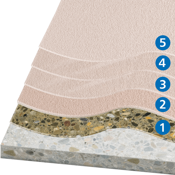 - Revêtement mortier avec KLB-SYSTEM EPOXID EP 158 et du sable quartzeux coloré