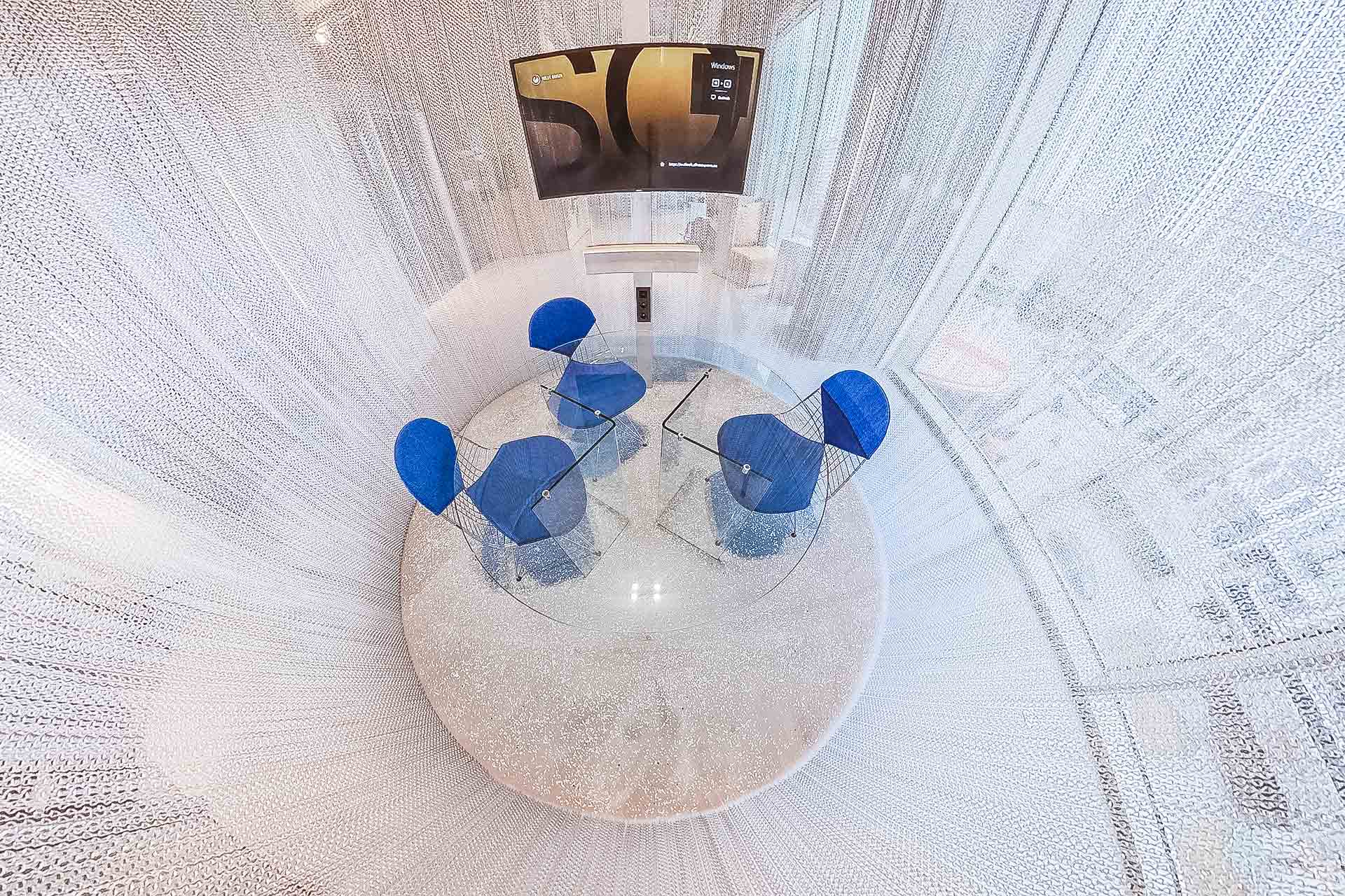 Certaines zones dans l’Antwerp Tower à Anvers, comme une salle de réunion et des couloirs, ont été mises en valeur de manière particulièrement décorative et innovante :