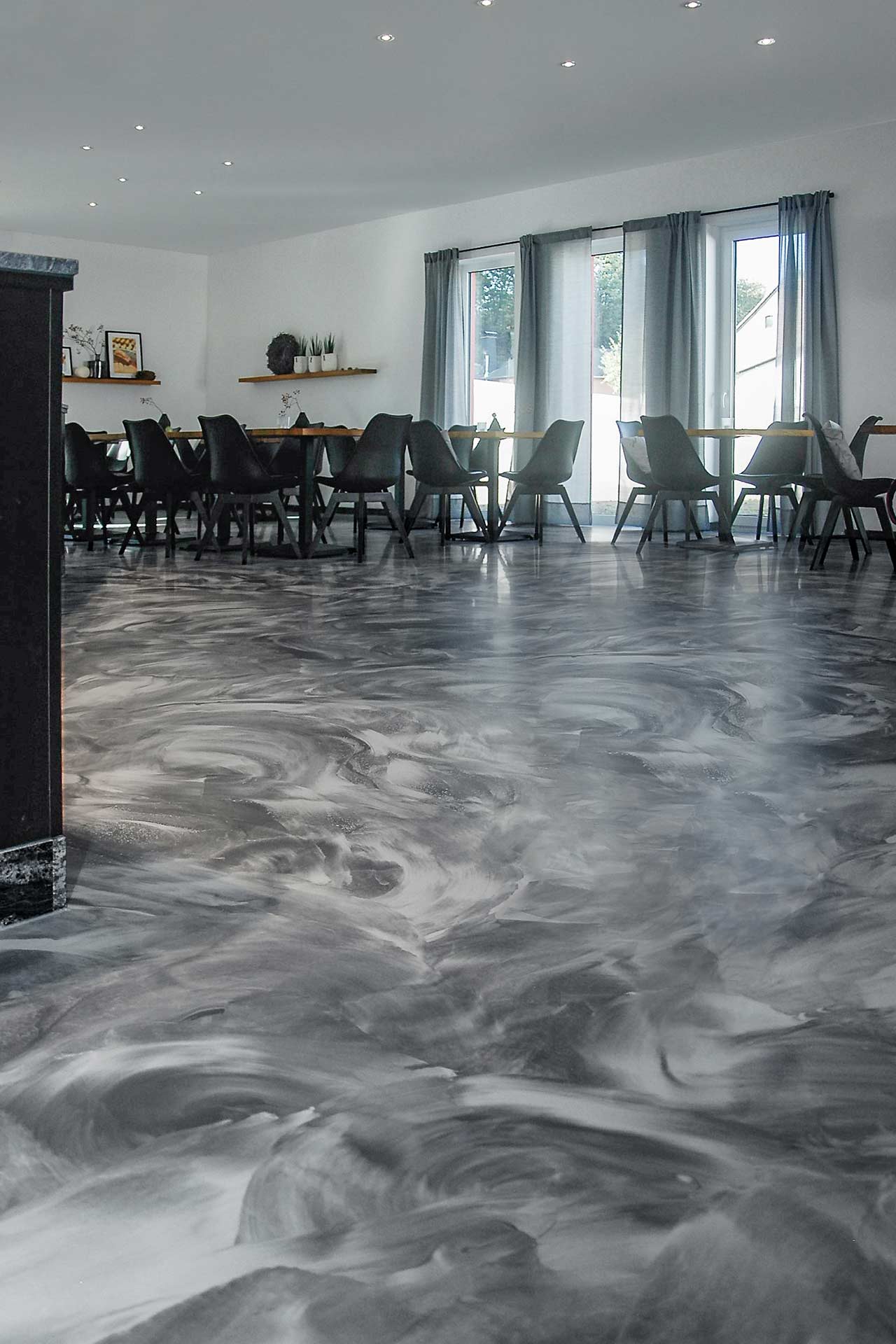 Dès le début, une grande exigence esthétique et une bonne qualité d’exécution ont été les priorités du projet du café pâtisserie « Printenhaus Café Portz ». Surtout lors de la vente de produits alimentaires, le sol devait pouvoir être nettoyé rapidement et facilement ou être maintenu dans un état de propreté hygiénique.