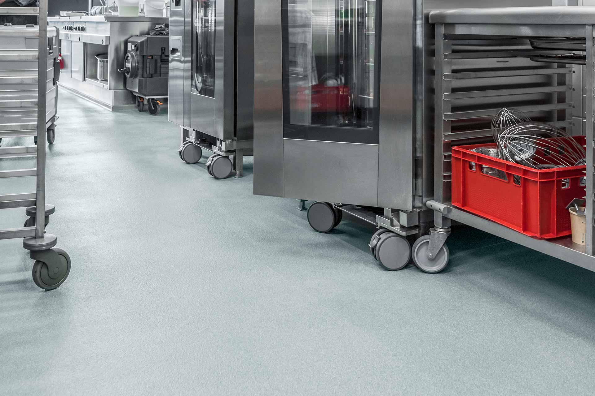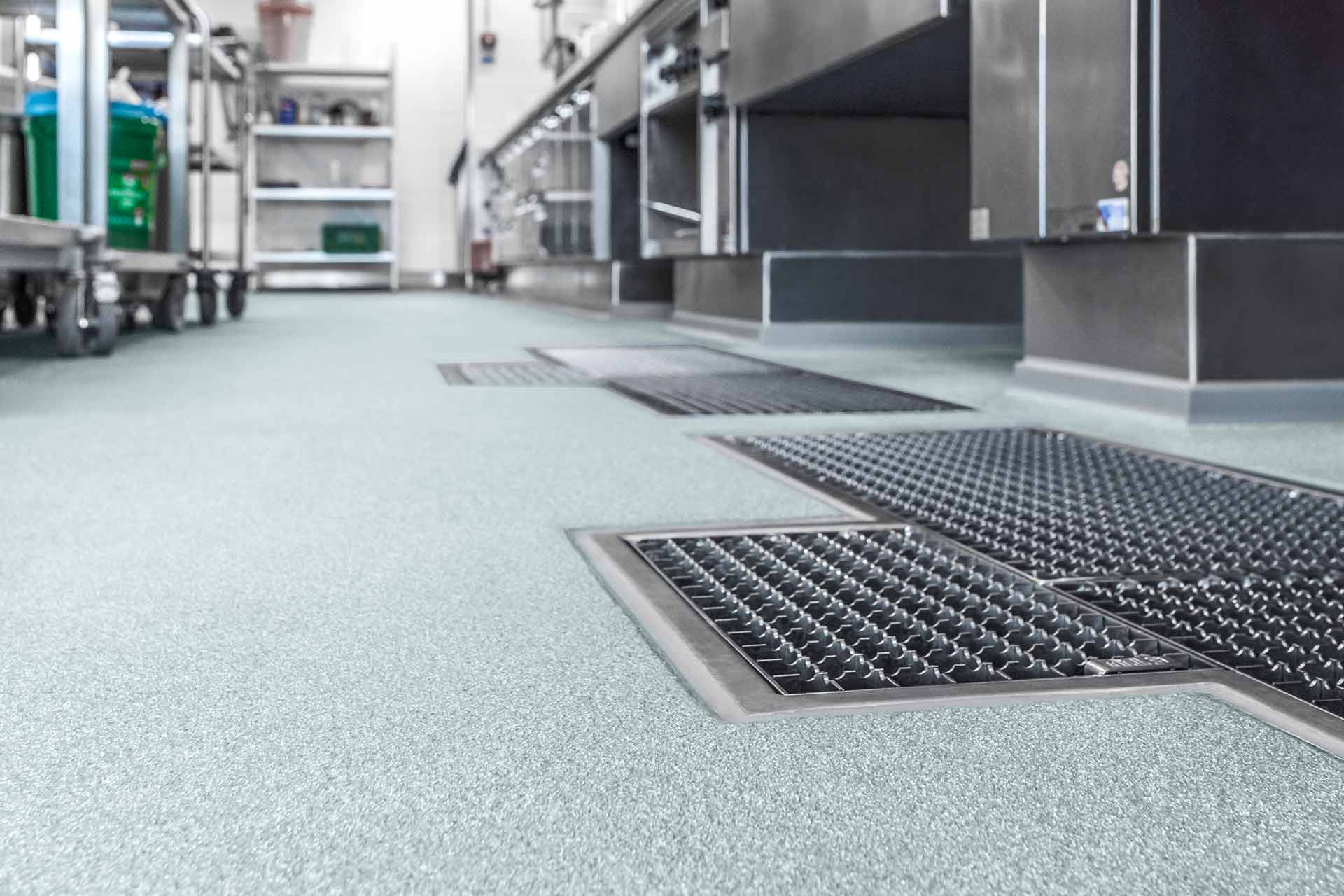 Avec le système H1 KLB KITCHEN EP Standard, on a trouvé la solution parfaite pour une surface antidérapante, résistante aux produits chimiques ou à l’eau, qui est en plus facile à maintenir propre. Ces propriétés se complètent mutuellement et contribuent à ce que toutes les exigences nécessaires pour le travail dans une cuisine professionnelle soient répondues.