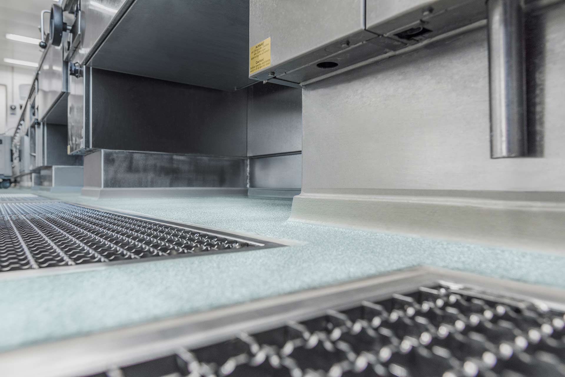 Le revêtement de sol fallait offrir au client un investissement stable et financière dans la mesure où il réunissait de nombreux avantages en un seul système : outre une surface résistante aux produits chimiques et à l’eau chaude – ce qui est souvent une condition principale dans les cuisines – un certain degré de glissement était tout aussi important. Une bonne capacité de nettoyage devait compléter l’utilité du sol.