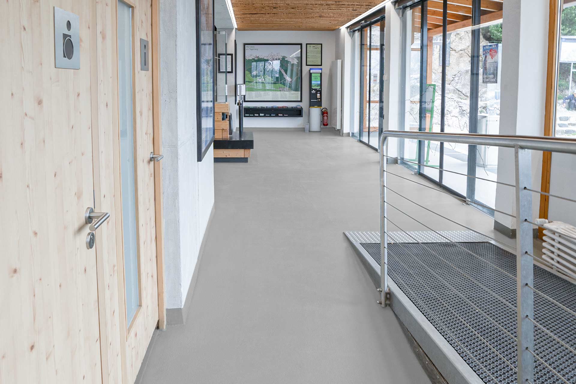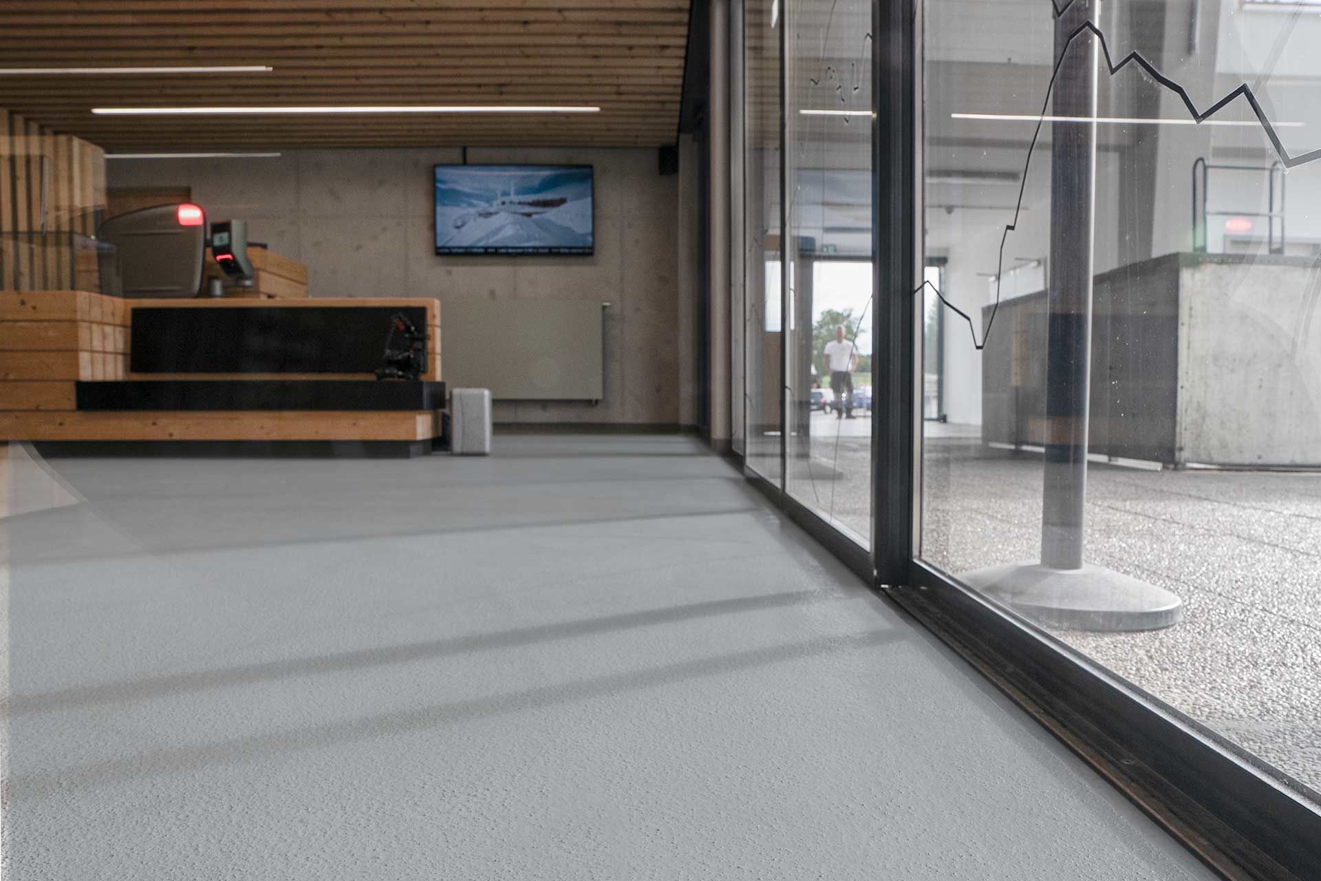 Avec une préparation minutieuse du substrat et un système de sol adapté, le recouvrement d’anciens revêtements comme le carrelage ne pose aucun problème. Dans la station de montagne et de vallée du téléphérique de Tegelberg en Allemagne, une résine polyuréthane flexible et très robuste a été appliquée sur le carrelage existant.