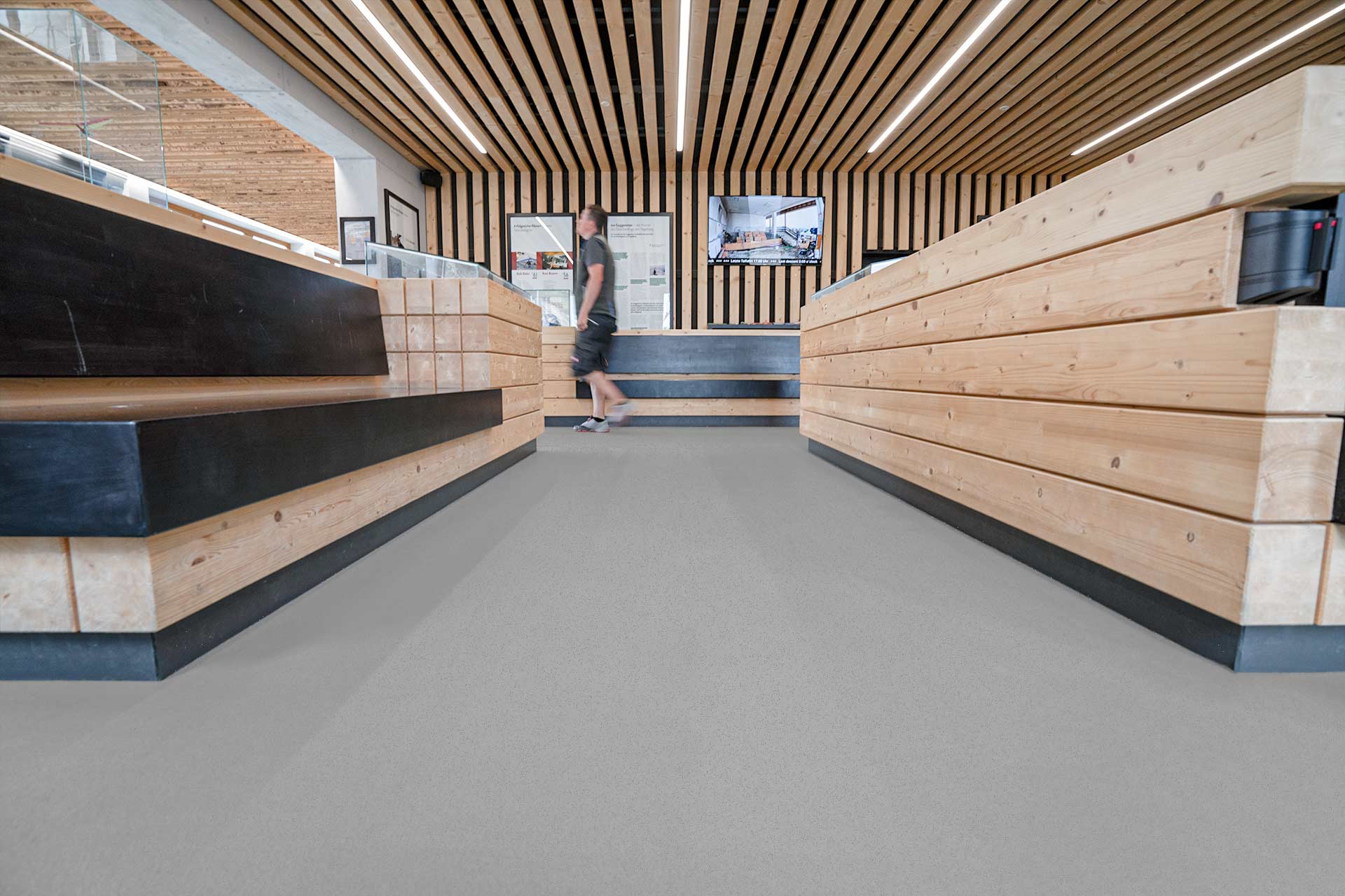 Aussi bien pendant la saison d’hiver qu’en été, le téléphérique est utilisé par les randonneurs, les skieurs ou les snowboarders. En raison de ce trafic permanent, seul un revêtement très résistant peut convenir à ce type d’utilisation. Les pierres, les bâtons de marche et de ski ainsi que les chaussures de ski nécessitent tous une bonne stabilité mécanique et une grande résistance à l’abrasion.