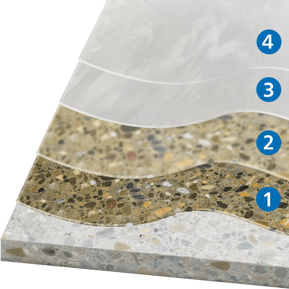 Der neue Belag sollte in erster Linie durch seine optische Brillanz überzeugen und zugleich höchste Ansprüche an Hygiene, chemische Beständigkeit und einfache Reinigung erfüllen. Besonders in den stark frequentierten Räumen war es entscheidend, dass der Boden auch mechanischen Belastungen standhält.