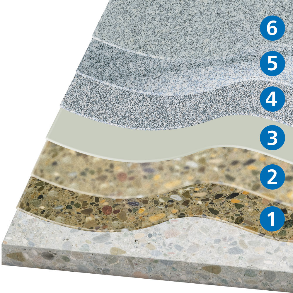 - Grundschicht mit KLB-SYSTEM EPOXID EP 216 Universal, Vollabstreuung mit KLB-Colorquarzsand